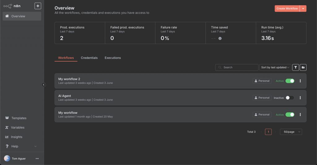 Chaque flux d’automatisation est conçu sous forme de noeuds interconnectés, combinant des appels API (BigCommerce, Asana, Google Docs…), des filtres conditionnels, et des blocs de traitement NLP via OpenAI. Le système permet ainsi de centraliser des tâches habituellement manuelles et de les exécuter instantanément.